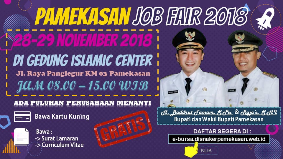 Hadiri Pameran Kesempatan Kerja (Job Fair) yang diadakan oleh Dinas Tenaga Kerja Pamekasan. Diikuti oleh Puluhan Perusahaan yang membuka ribuan lowongan kerja.
